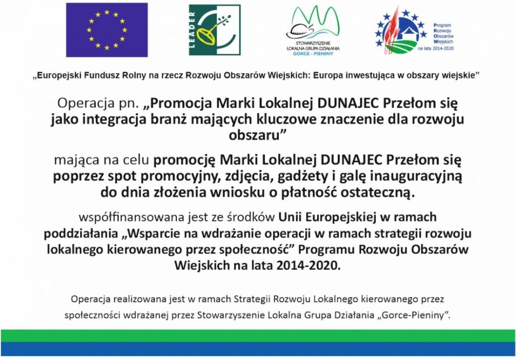 ZAPROSZENIE NA GALĘ INAGURACYJNĄ MARKI LOKALNEJ DUNAJEC PRZEŁOM SIĘ