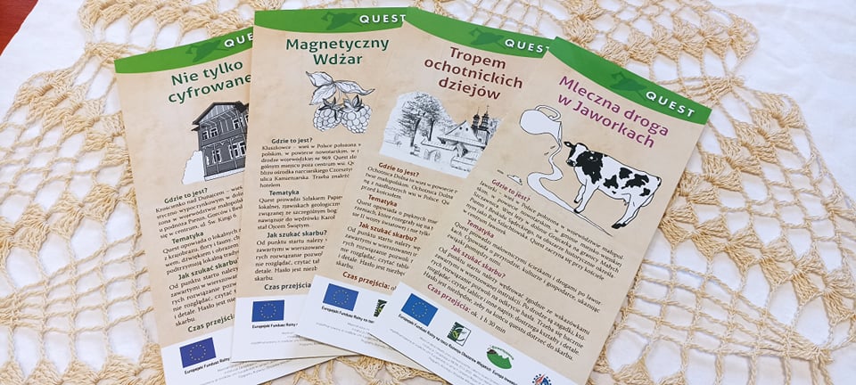 Turystyczne QUESTY powstały w ramach projektu ekoWZMACNIACZ realizowanego w latach 2019-2021 jako projekt własny w ramach realizacji Lokalnej Strategii Działania. Projekt ten rozpoczął realizację swoich założeń w roku 2019, i z uwagi na występującą pandemię COVID-19 został wydłużony w swojej realizacji do roku 2021.